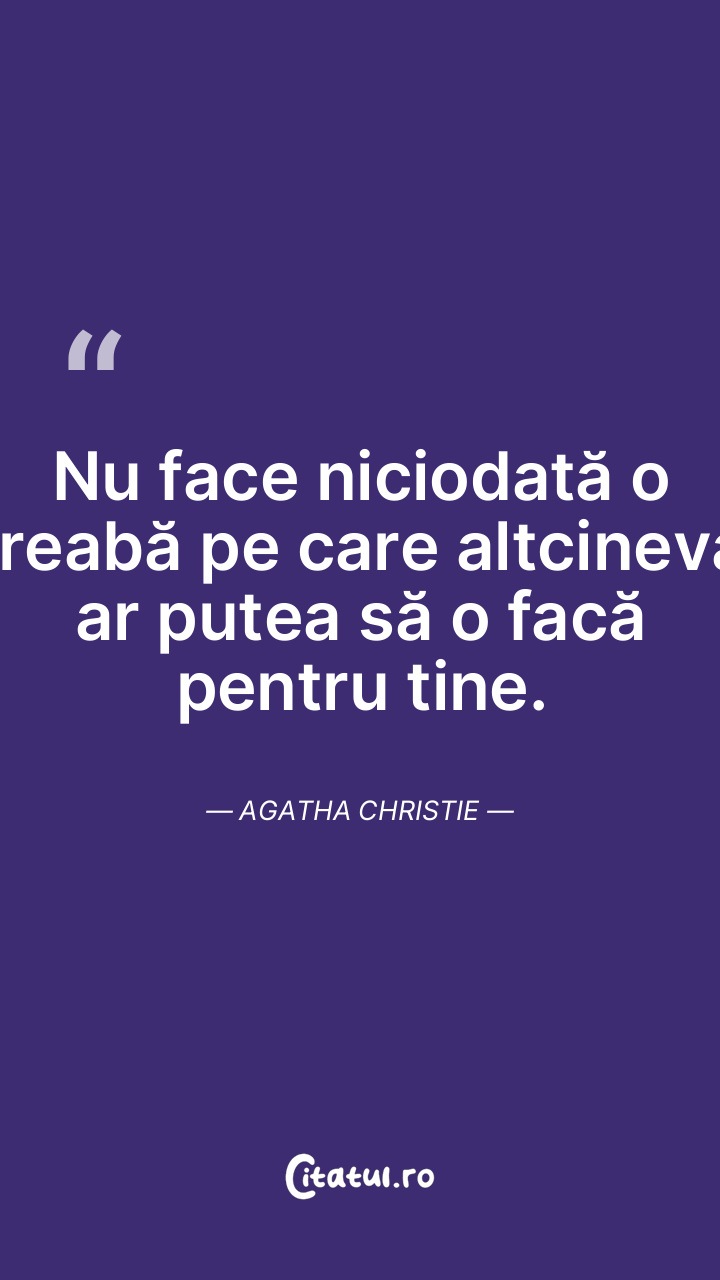 Nu face niciodată o treabă pe care altcineva ar putea să o facă pentru tine. Agatha Christie