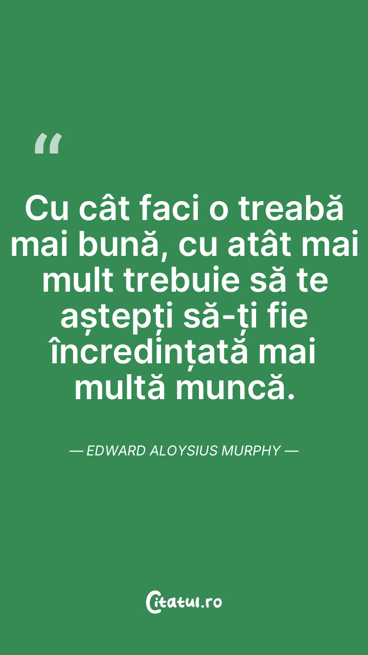 Cu cât faci o treabă mai bună, cu atât mai mult trebuie să te aștepți să-ți fie încredințată mai multă muncă. Edward Aloysius Murphy