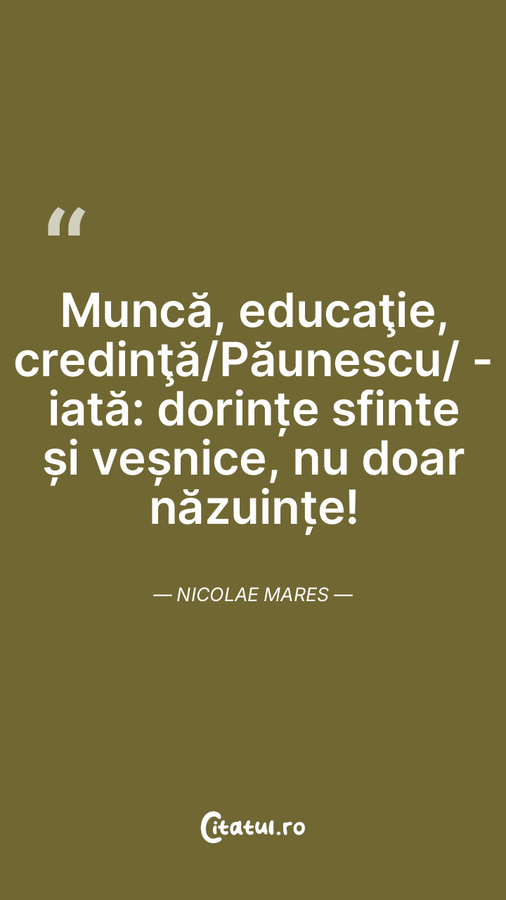 Muncă, educaţie, credinţă/Păunescu/ - iată: dorințe sfinte și veșnice, nu doar năzuințe! Nicolae Mares