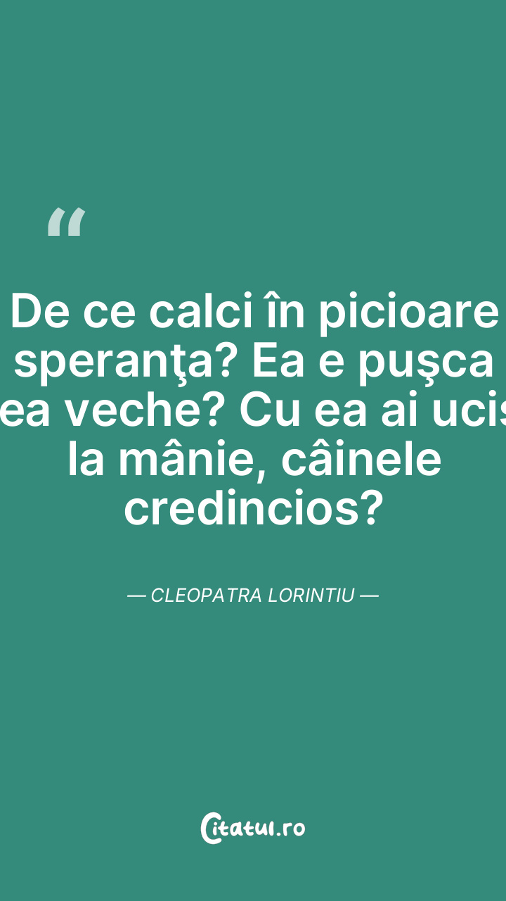 De ce calci în picioare speranţa? Ea e puşca cea veche? Cu ea ai ucis, la mânie, câinele credincios? Cleopatra Lorintiu