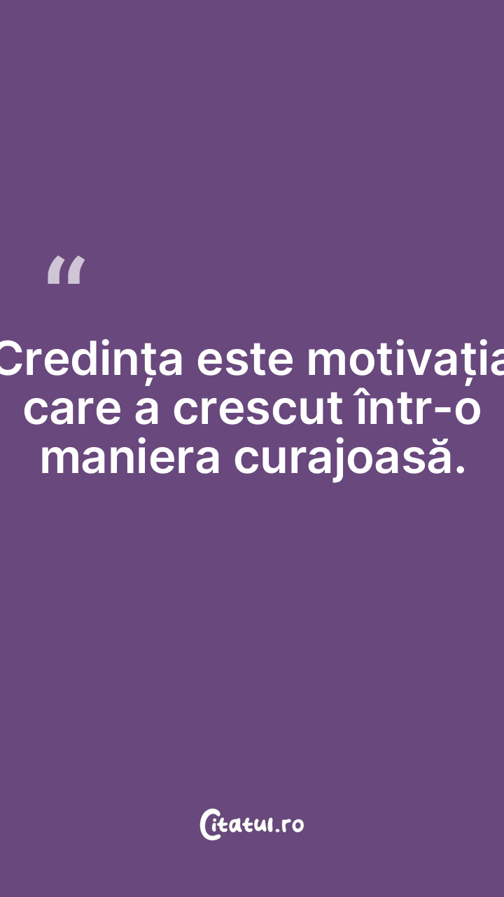 Credința este motivația care a crescut într-o maniera curajoasă.