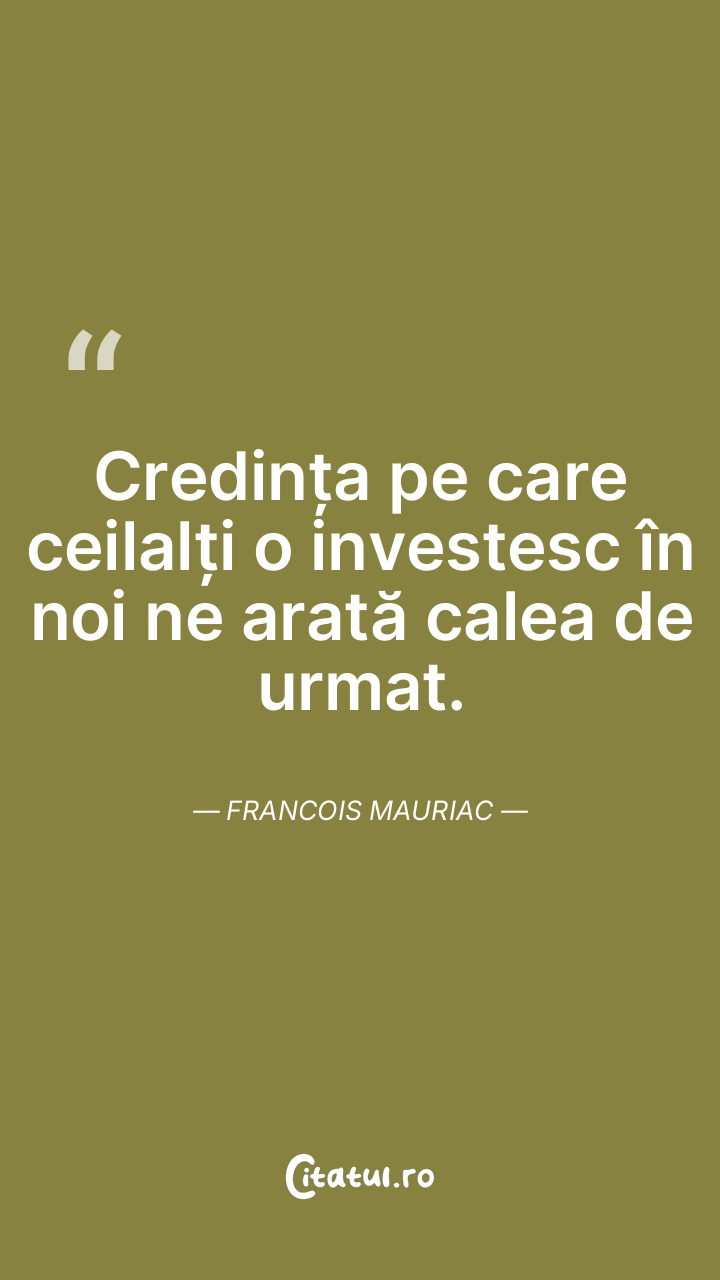 Credința pe care ceilalți o investesc în noi ne arată calea de urmat. Francois Mauriac
