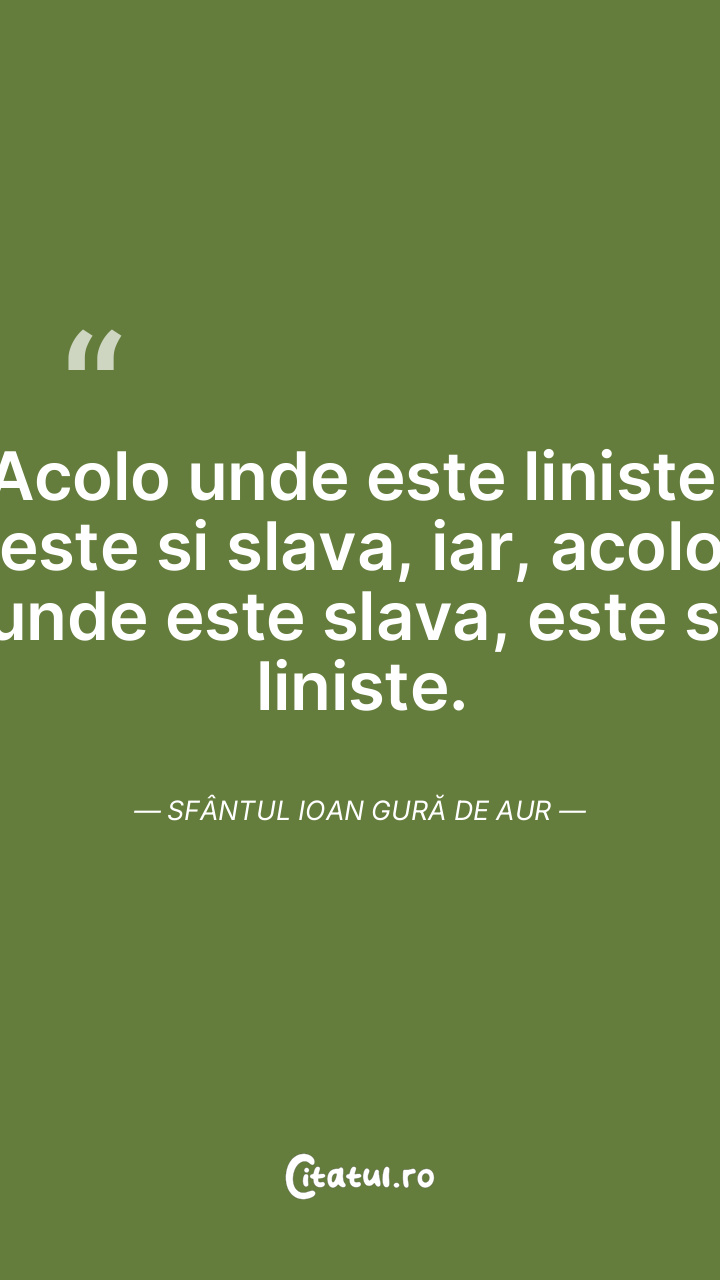 Acolo unde este liniste, este si slava, iar, acolo unde este slava, este si liniste. Sfântul Ioan Gură de Aur