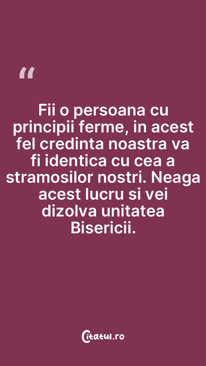 Fii o persoana cu principii ferme, in acest fel credinta noastra va fi identica cu cea a stramosilor nostri. Neaga acest lucru si vei dizolva unitatea Bisericii.