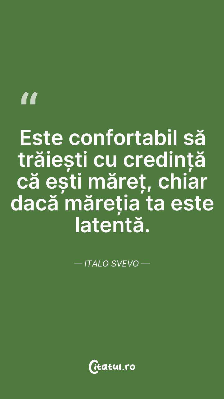 Este confortabil să trăiești cu credință că ești măreț, chiar dacă măreția ta este latentă. Italo Svevo