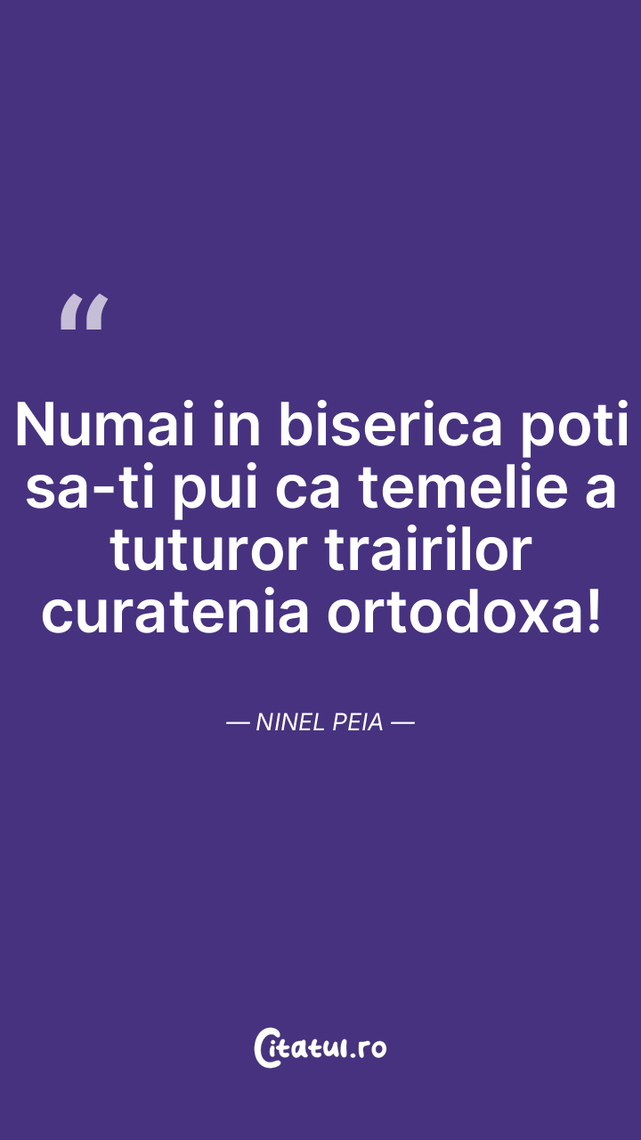 Numai in biserica poti sa-ti pui ca temelie a tuturor trairilor curatenia ortodoxa! Ninel Peia