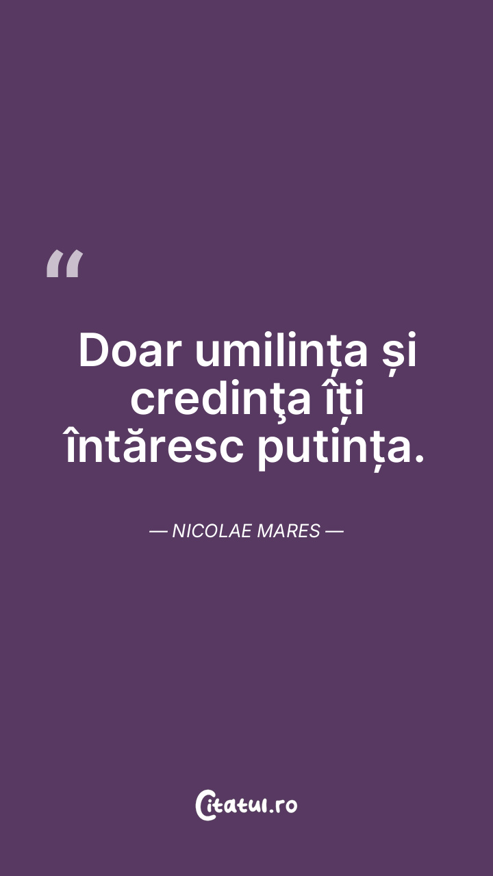 Doar umilința și credinţa îți întăresc putința. Nicolae Mares