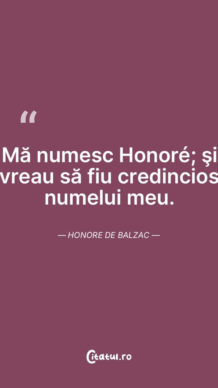 Mă numesc Honoré; şi vreau să fiu credincios numelui meu. Honore de Balzac