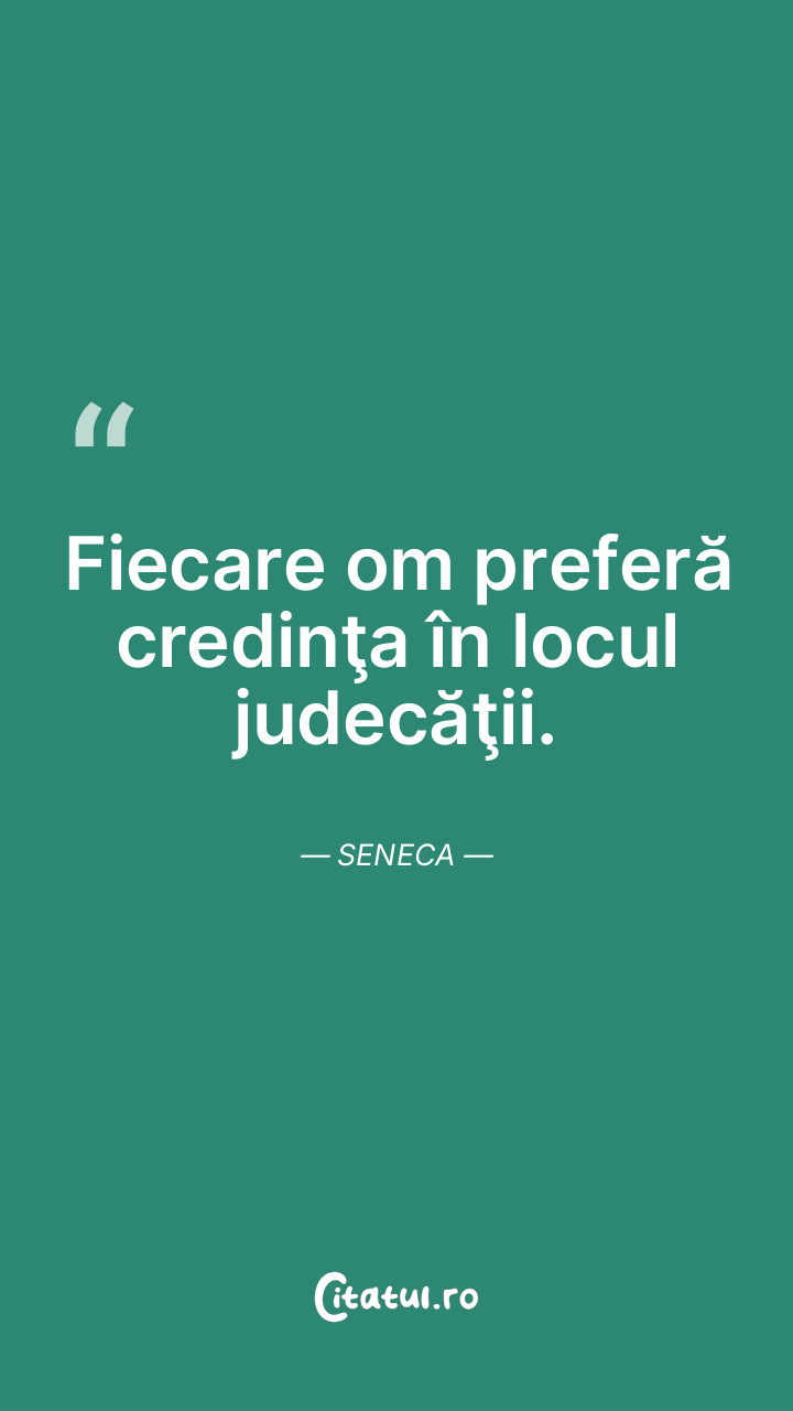 Fiecare om preferă credinţa în locul judecăţii. Seneca
