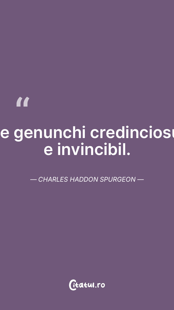 Pe genunchi credinciosul e invincibil. Charles Haddon Spurgeon