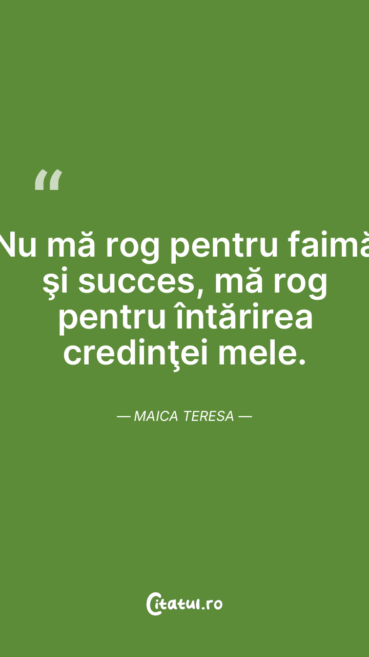 Nu mă rog pentru faimă şi succes, mă rog pentru întărirea credinţei mele. Maica Teresa
