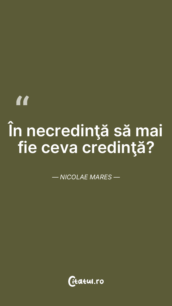 În necredinţă să mai fie ceva credinţă? Nicolae Mares