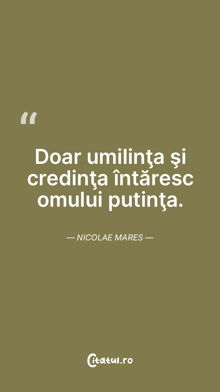 Doar umilinţa şi credinţa întăresc omului putinţa. Nicolae Mares