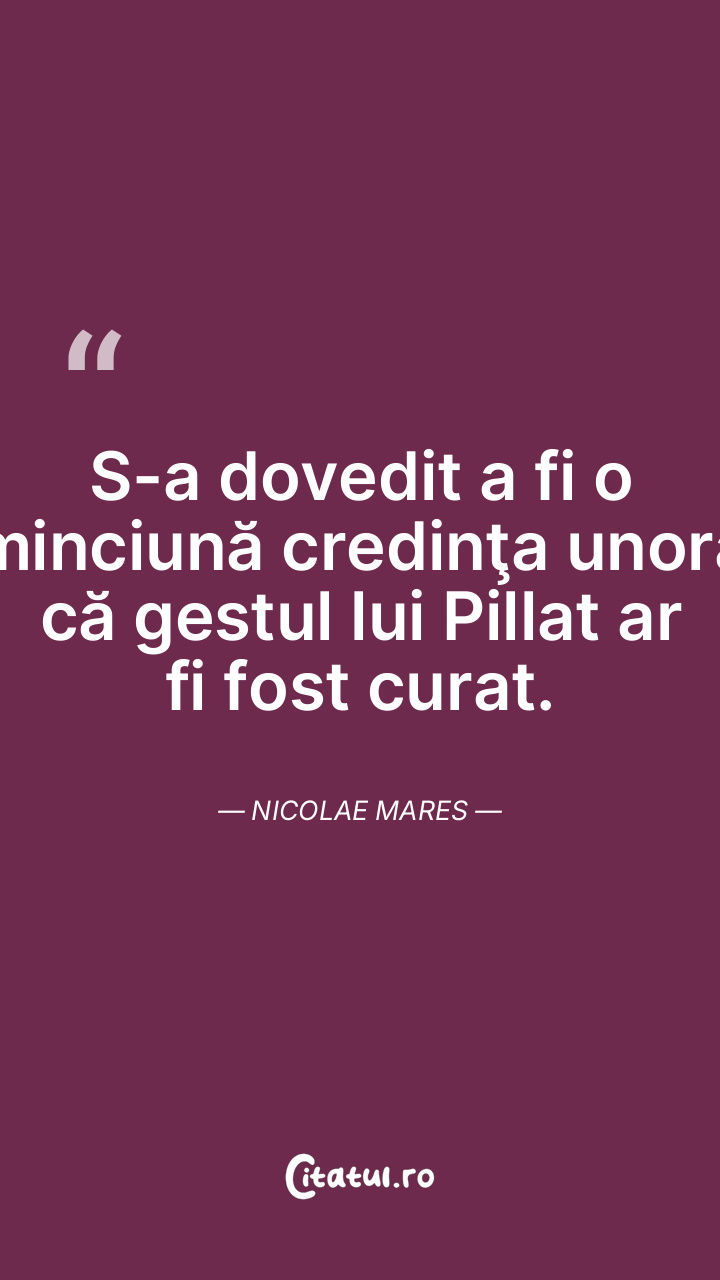 S-a dovedit a fi o minciună credinţa unora că gestul lui Pillat ar fi fost curat. Nicolae Mares