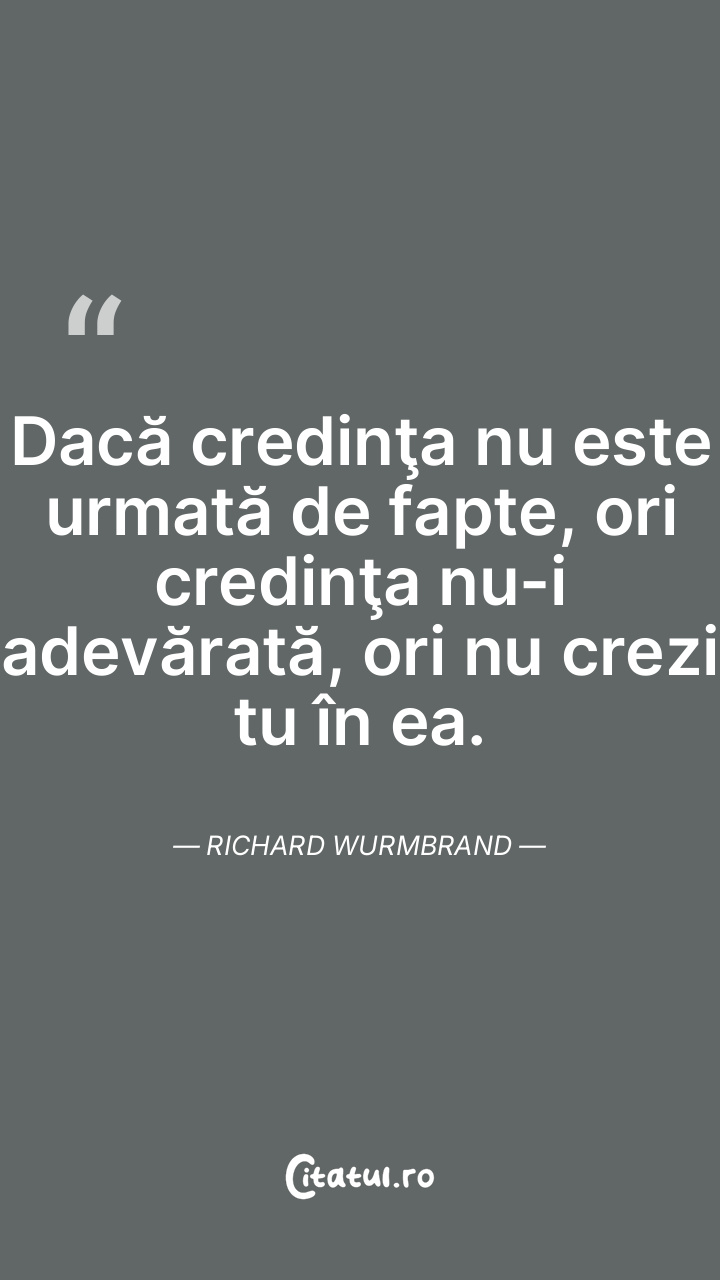 Dacă credinţa nu este urmată de fapte, ori credinţa nu-i adevărată, ori nu crezi tu în ea. Richard Wurmbrand