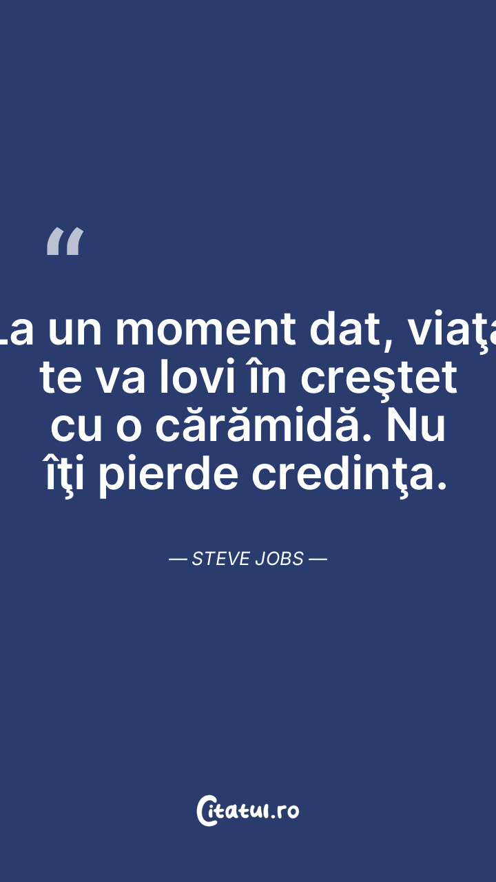 La un moment dat, viaţa te va lovi în creştet cu o cărămidă. Nu îţi pierde credinţa. Steve Jobs