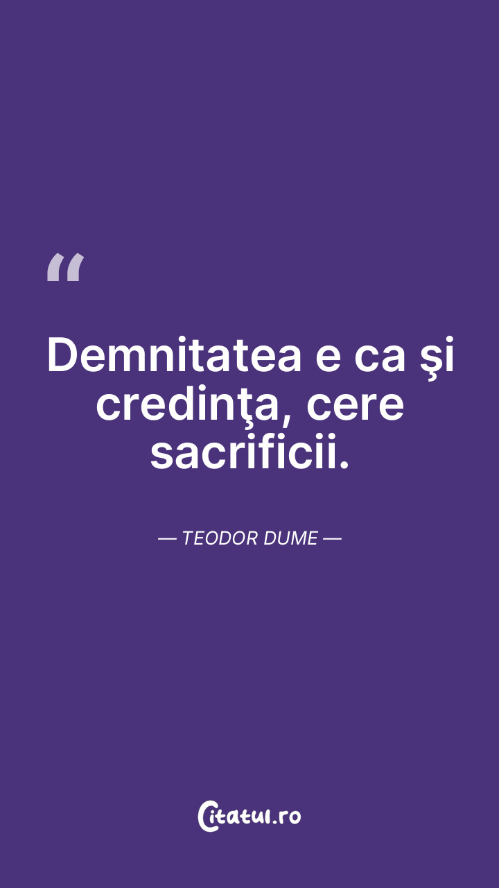 Demnitatea e ca şi credinţa, cere sacrificii. Teodor Dume