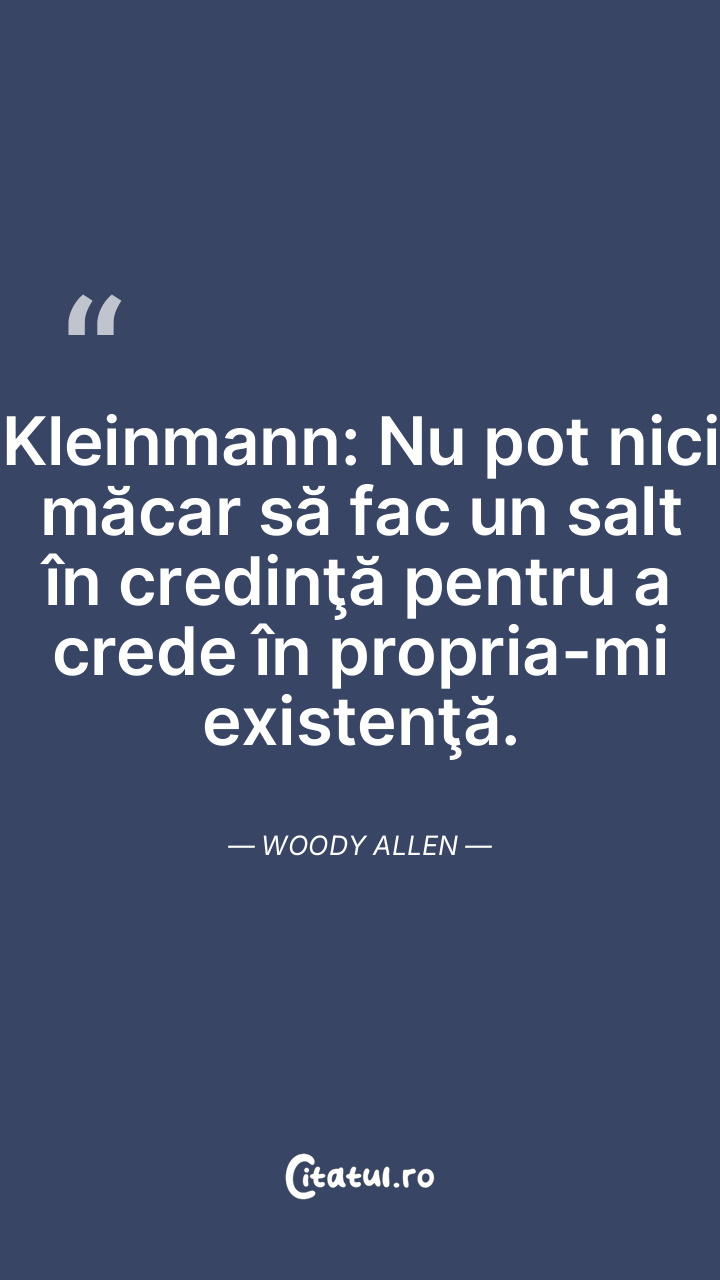 Kleinmann: Nu pot nici măcar să fac un salt în credinţă pentru a crede în propria-mi existenţă. Woody Allen