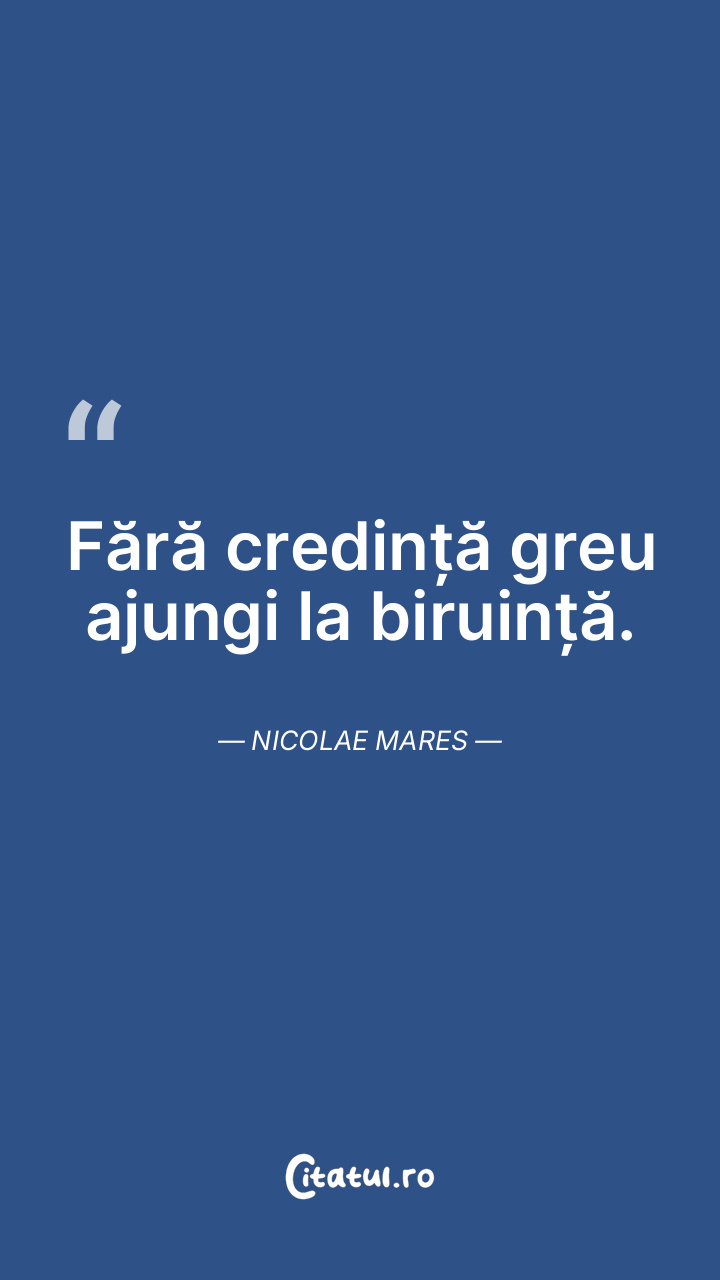 Fără credință greu ajungi la biruință. Nicolae Mares