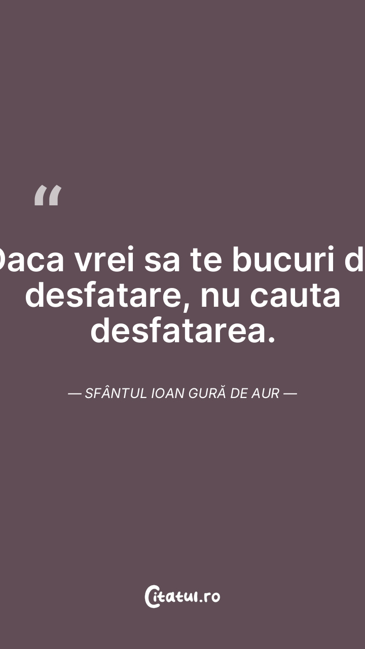 Daca vrei sa te bucuri de desfatare, nu cauta desfatarea. Sfântul Ioan Gură de Aur