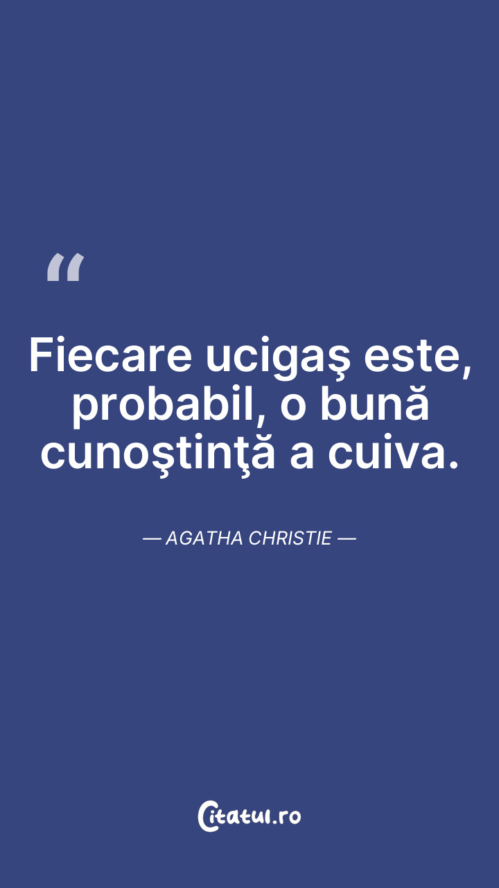 Fiecare ucigaş este, probabil, o bună cunoştinţă a cuiva. Agatha Christie