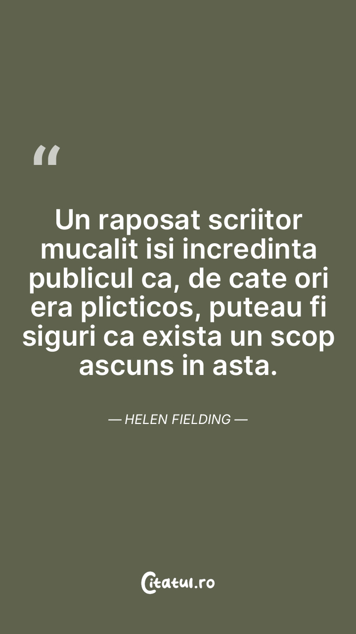 Un raposat scriitor mucalit isi incredinta publicul ca, de cate ori era plicticos, puteau fi siguri ca exista un scop ascuns in asta. Helen Fielding