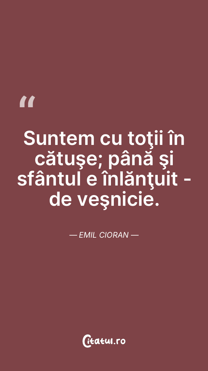 Suntem cu toţii în cătuşe; până şi sfântul e înlănţuit - de veşnicie. Emil Cioran