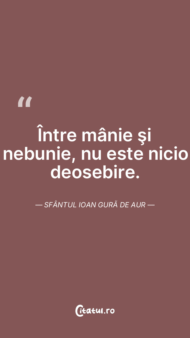 Între mânie şi nebunie, nu este nicio deosebire. Sfântul Ioan Gură de Aur