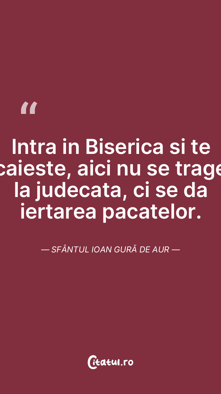 Intra in Biserica si te caieste, aici nu se trage la judecata, ci se da iertarea pacatelor. Sfântul Ioan Gură de Aur