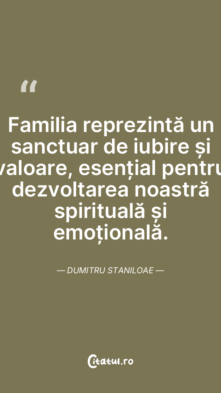 Familia reprezintă un sanctuar de iubire și valoare, esențial pentru dezvoltarea noastră spirituală și emoțională. Dumitru Staniloae