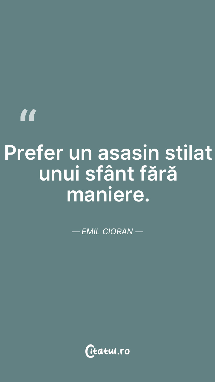 Prefer un asasin stilat unui sfânt fără maniere. Emil Cioran