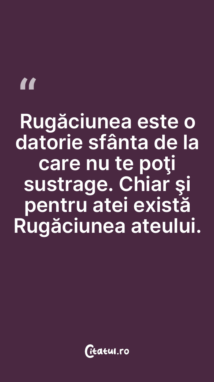 Rugăciunea este o datorie sfânta de la care nu te poţi sustrage. Chiar şi pentru atei există Rugăciunea ateului.