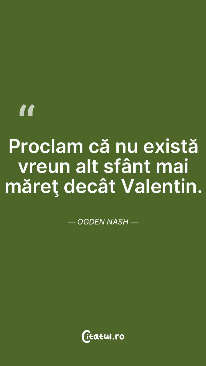 Proclam că nu există vreun alt sfânt mai măreţ decât Valentin. Ogden Nash