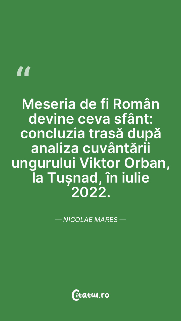 Meseria de fi Român devine ceva sfânt: concluzia trasă după analiza cuvântării ungurului Viktor Orban, la Tușnad, în iulie 2022. Nicolae Mares