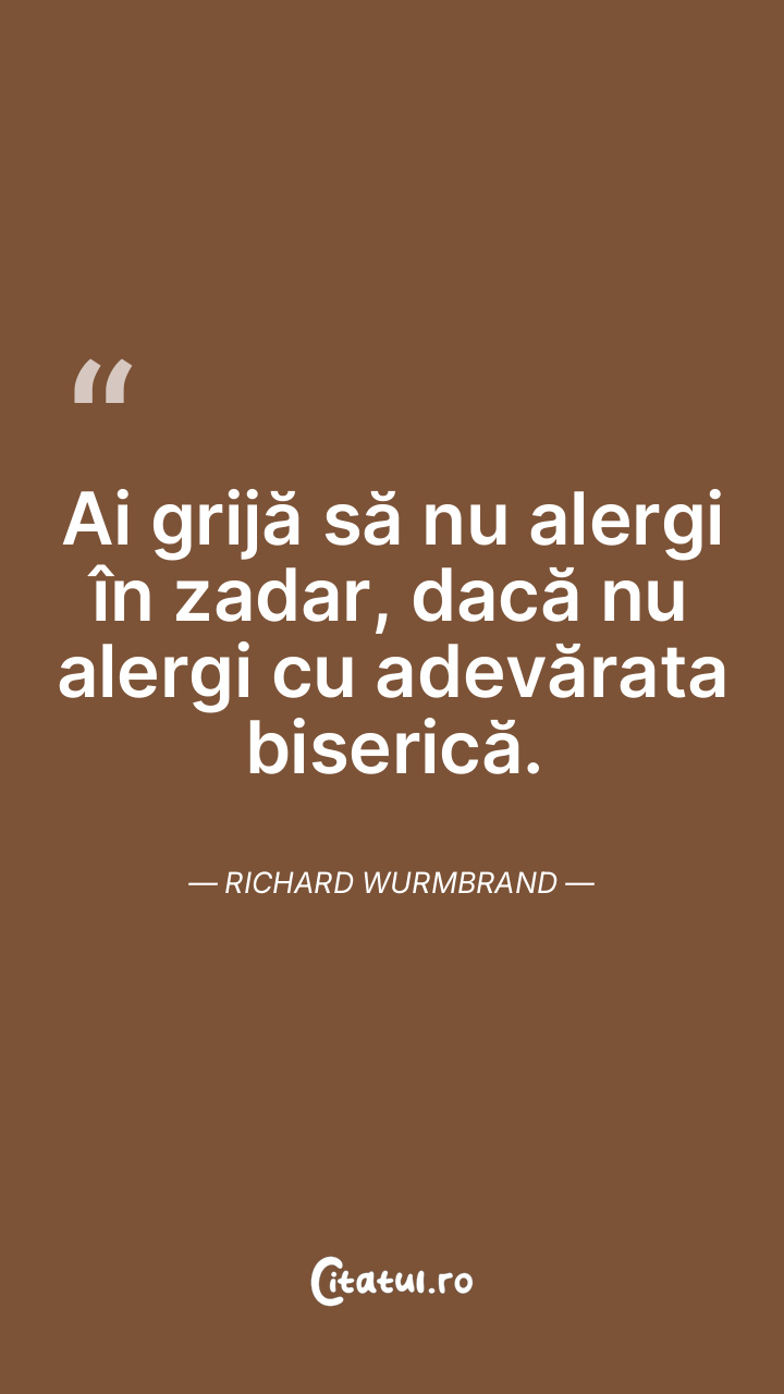 Ai grijă să nu alergi în zadar, dacă nu alergi cu adevărata biserică. Richard Wurmbrand
