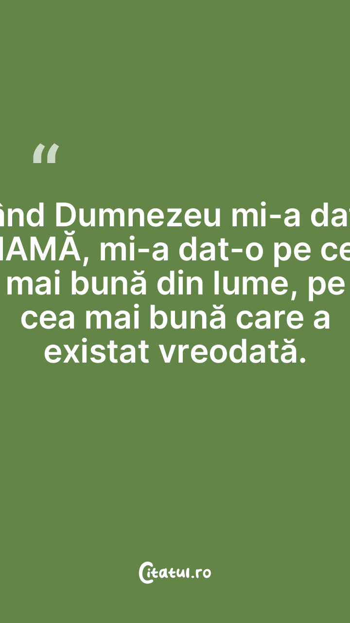 Când Dumnezeu mi-a dat o MAMĂ, mi-a dat-o pe cea mai bună din lume, pe cea mai bună care a existat vreodată.