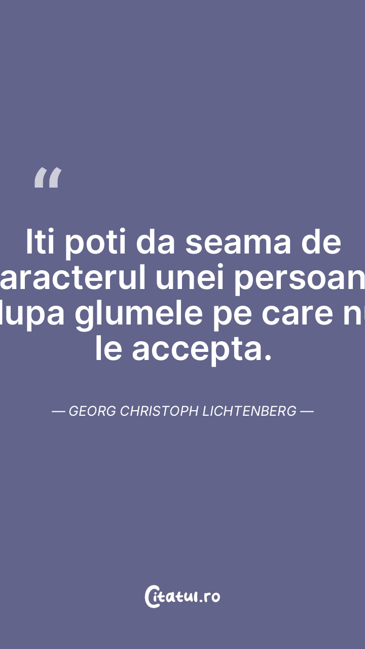 Iti poti da seama de caracterul unei persoane dupa glumele pe care nu le accepta. Georg Christoph Lichtenberg