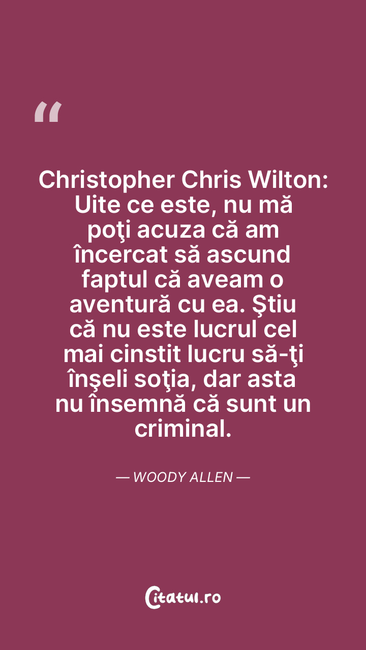 Christopher Chris Wilton: Uite ce este, nu mă poţi acuza că am încercat să ascund faptul că aveam o aventură cu ea. Ştiu că nu este lucrul cel mai cinstit lucru să-ţi înşeli soţia, dar asta nu însemnă că sunt un criminal. Woody Allen