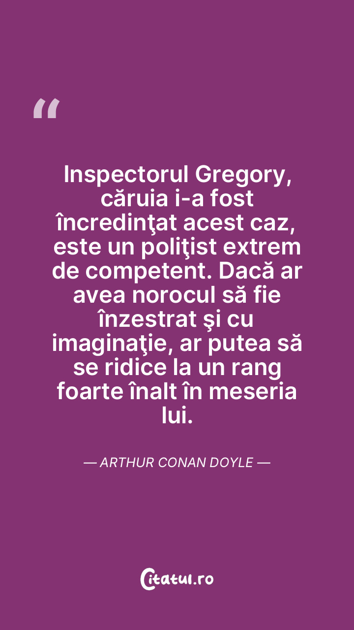 Inspectorul Gregory, căruia i-a fost încredinţat acest caz, este un poliţist extrem de competent. Dacă ar avea norocul să fie înzestrat şi cu imaginaţie, ar putea să se ridice la un rang foarte înalt în meseria lui. Arthur Conan Doyle
