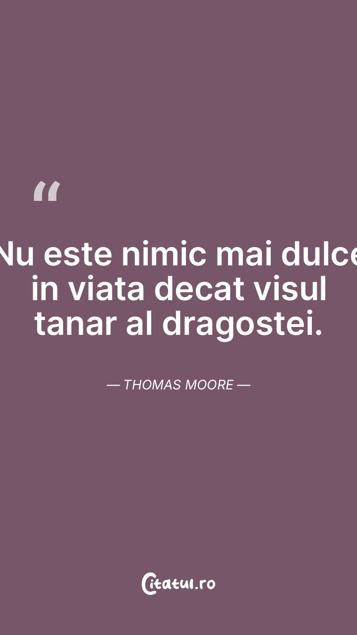 Nu este nimic mai dulce in viata decat visul tanar al dragostei. Thomas Moore