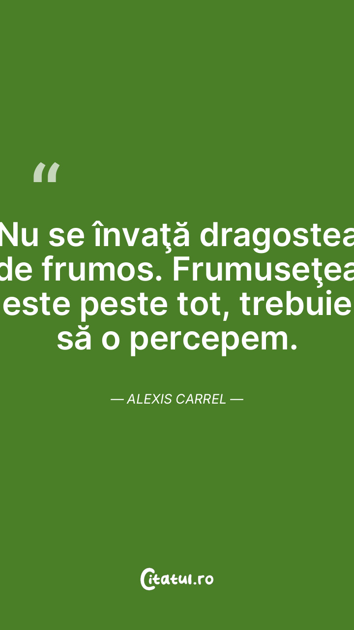 Nu se învaţă dragostea de frumos. Frumuseţea este peste tot, trebuie să o percepem. Alexis Carrel
