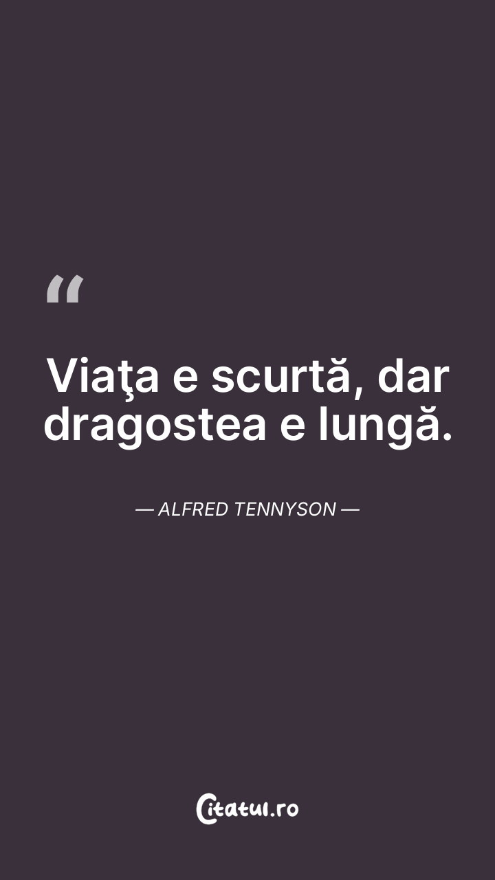 Viaţa e scurtă, dar dragostea e lungă. Alfred Tennyson