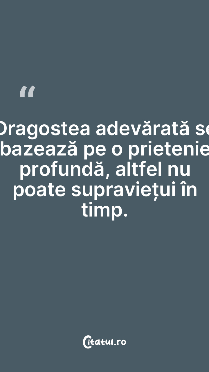 Dragostea adevărată se bazează pe o prietenie profundă, altfel nu poate supraviețui în timp.