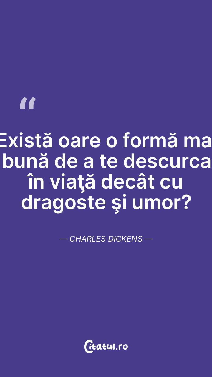 Există oare o formă mai bună de a te descurca în viaţă decât cu dragoste şi umor? Charles Dickens