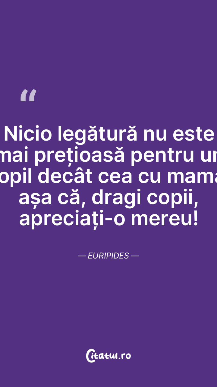 Nicio legătură nu este mai prețioasă pentru un copil decât cea cu mama, așa că, dragi copii, apreciați-o mereu! Euripides