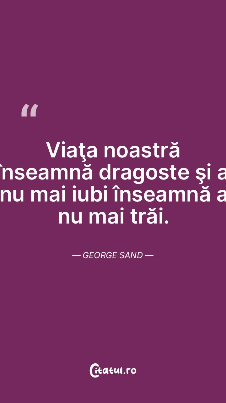 Viaţa noastră înseamnă dragoste şi a nu mai iubi înseamnă a nu mai trăi. George Sand