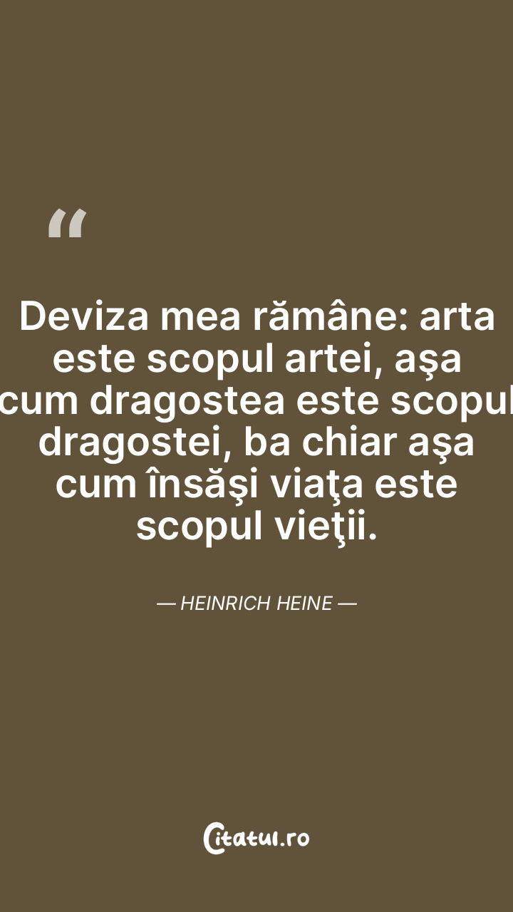 Deviza mea rămâne: arta este scopul artei, aşa cum dragostea este scopul dragostei, ba chiar aşa cum însăşi viaţa este scopul vieţii. Heinrich Heine
