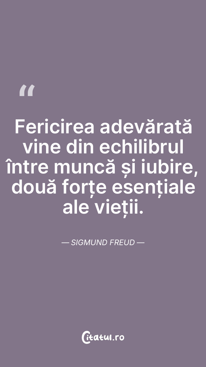 Fericirea adevărată vine din echilibrul între muncă și iubire, două forțe esențiale ale vieții. Sigmund Freud