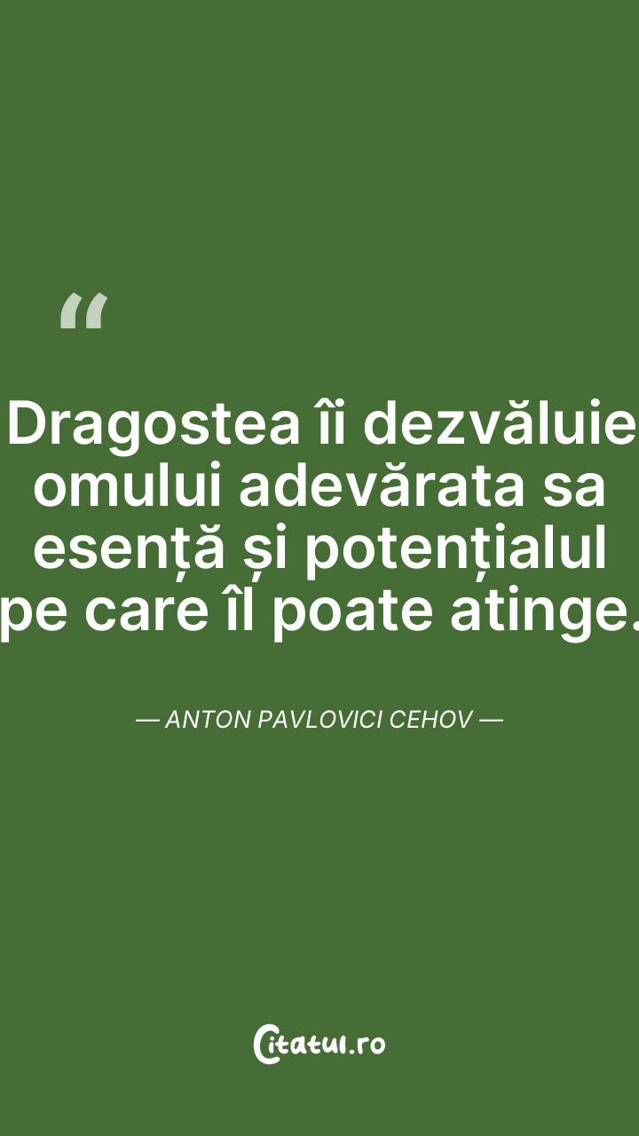 Dragostea îi dezvăluie omului adevărata sa esență și potențialul pe care îl poate atinge. Anton Pavlovici Cehov