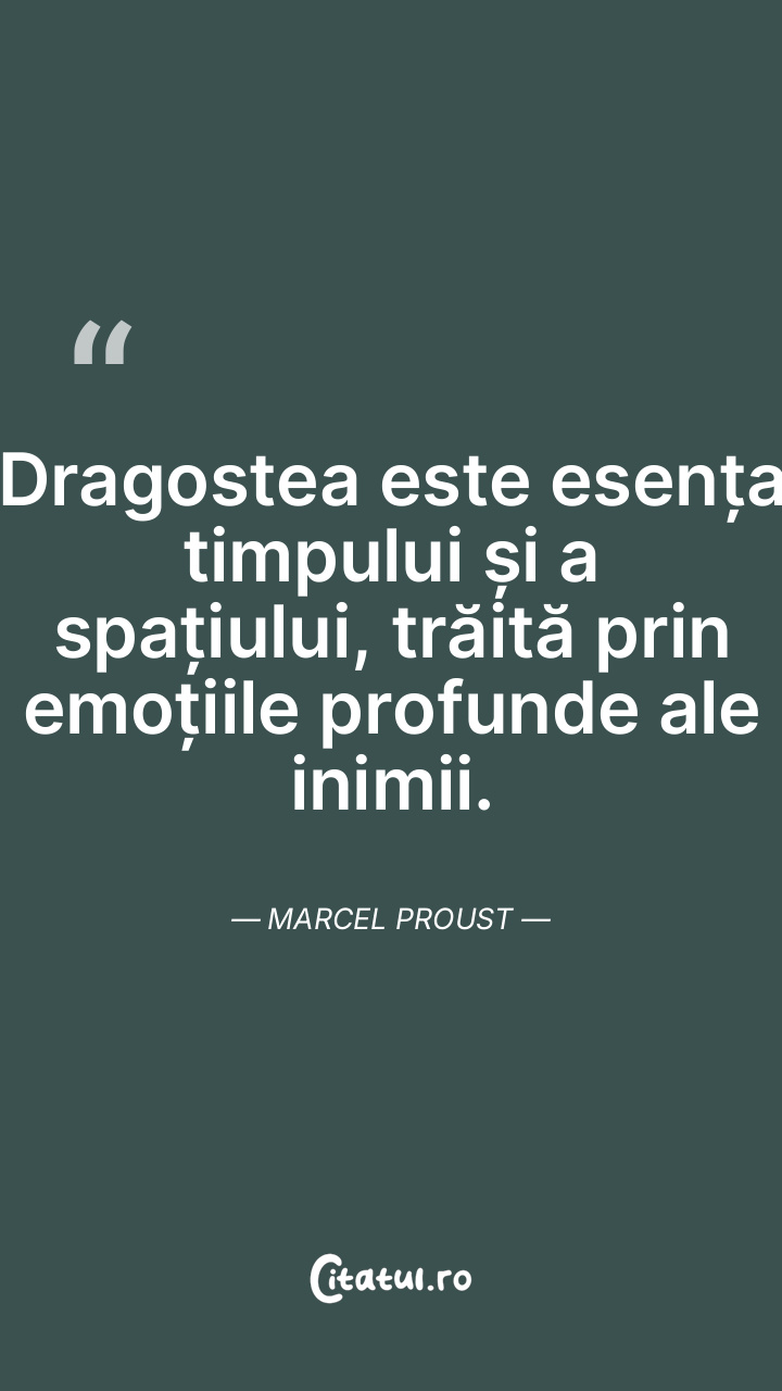 Dragostea este esența timpului și a spațiului, trăită prin emoțiile profunde ale inimii. Marcel Proust
